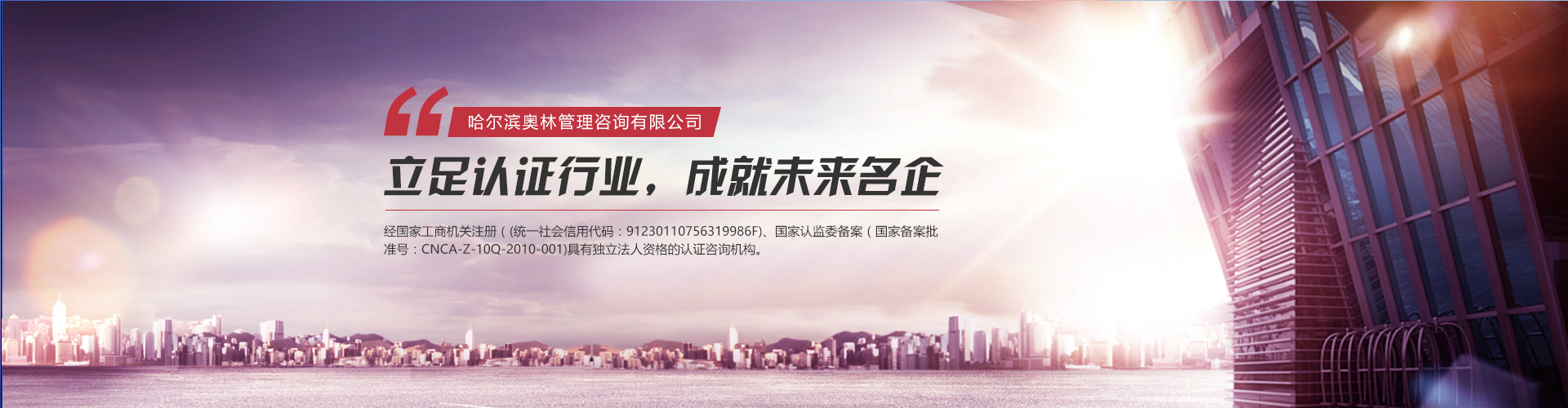 哈爾濱奧林管理咨詢有限公司(原新時代質(zhì)量認(rèn)證咨詢有限公司)成立于2000年9月,簡稱HOL,HOL是經(jīng)國家工商機關(guān)注冊(統(tǒng)一社會信用代碼:91230110756319986F)、國家認(rèn)監(jiān)委備案(國家備案批準(zhǔn)號:CNCA-Z-10Q-2010-001)具有獨立法人資格...